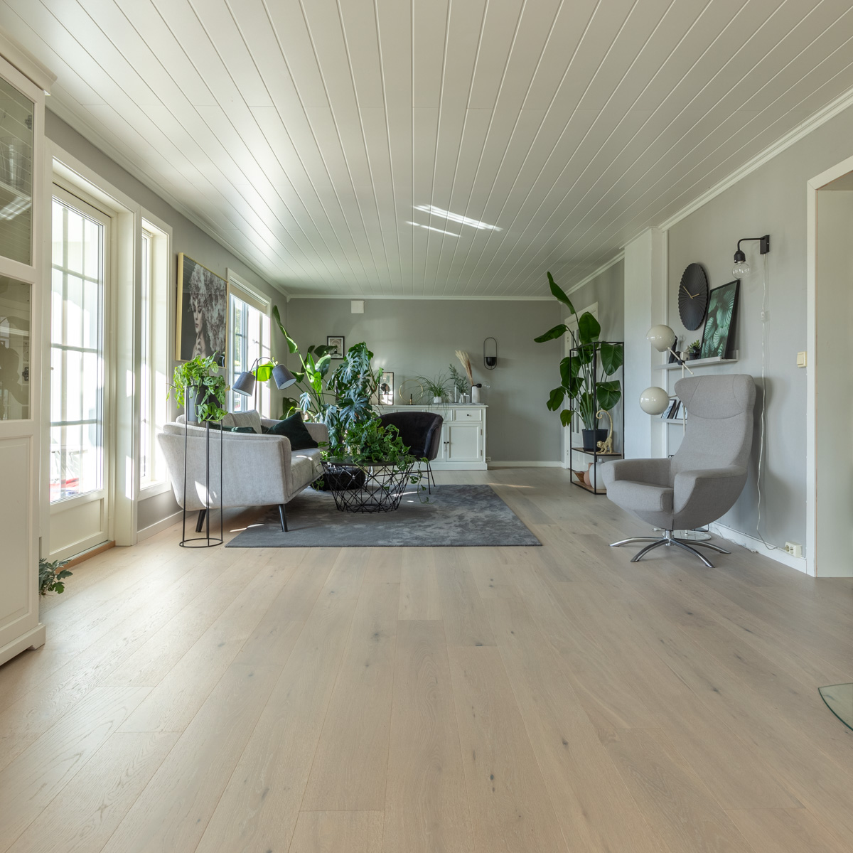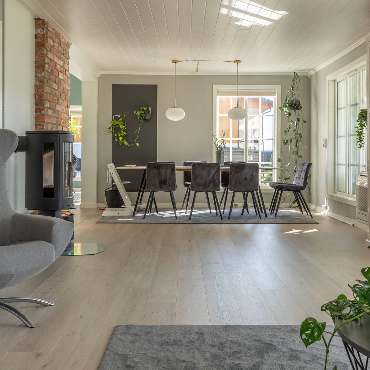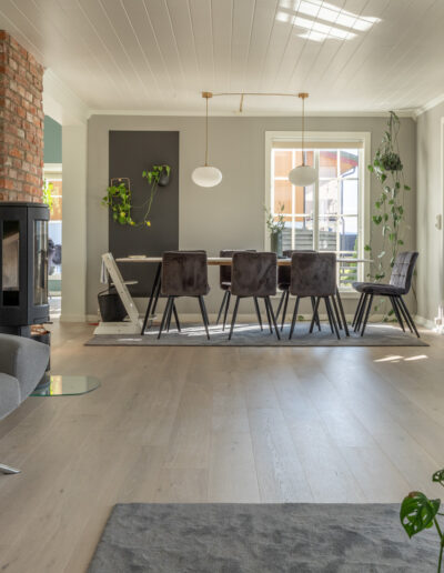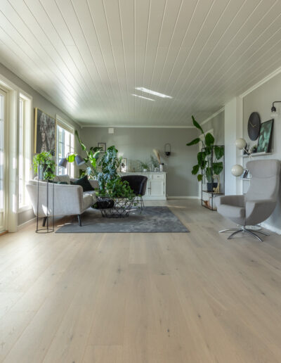 Parkett Nordkapp fra Nordic Flooring har en nydelig lys, ren og nøytral gråtone, med et naturlig og riktig tre-uttrykk. Parkett Nordkapp kan benyttes inntil lyse og mørke veggfarger i den kaldere sjangeren, og fremstår som et lyst parkettgulv – ikke typisk grått. Denne utgaven er spesialutviklet for det bevisste norske markedet, hvor den lyse grå-nyansen er nøytral. Parkett Nordkapp er børstet og supermatt lakkert i overflaten, og fremstår med et eksklusivt og naturlig uttrykk. En børstet overflate fremhever teksturene i treet, og tilfører noe mer livlig og herskapelig når dagslyset danser over gulvet. Parkett Nordkapp er i rustikk sortering, noe som gir en normal mengde med kvist i størrelse og i omfang. Et gulv som gir et rolig og naturlig uttrykk.