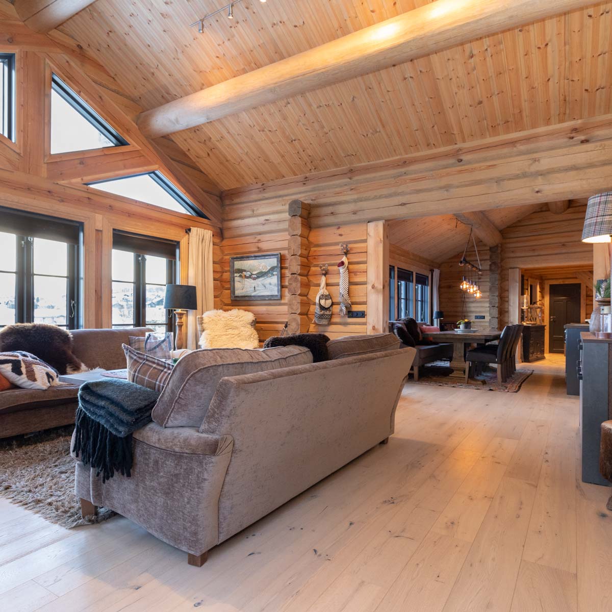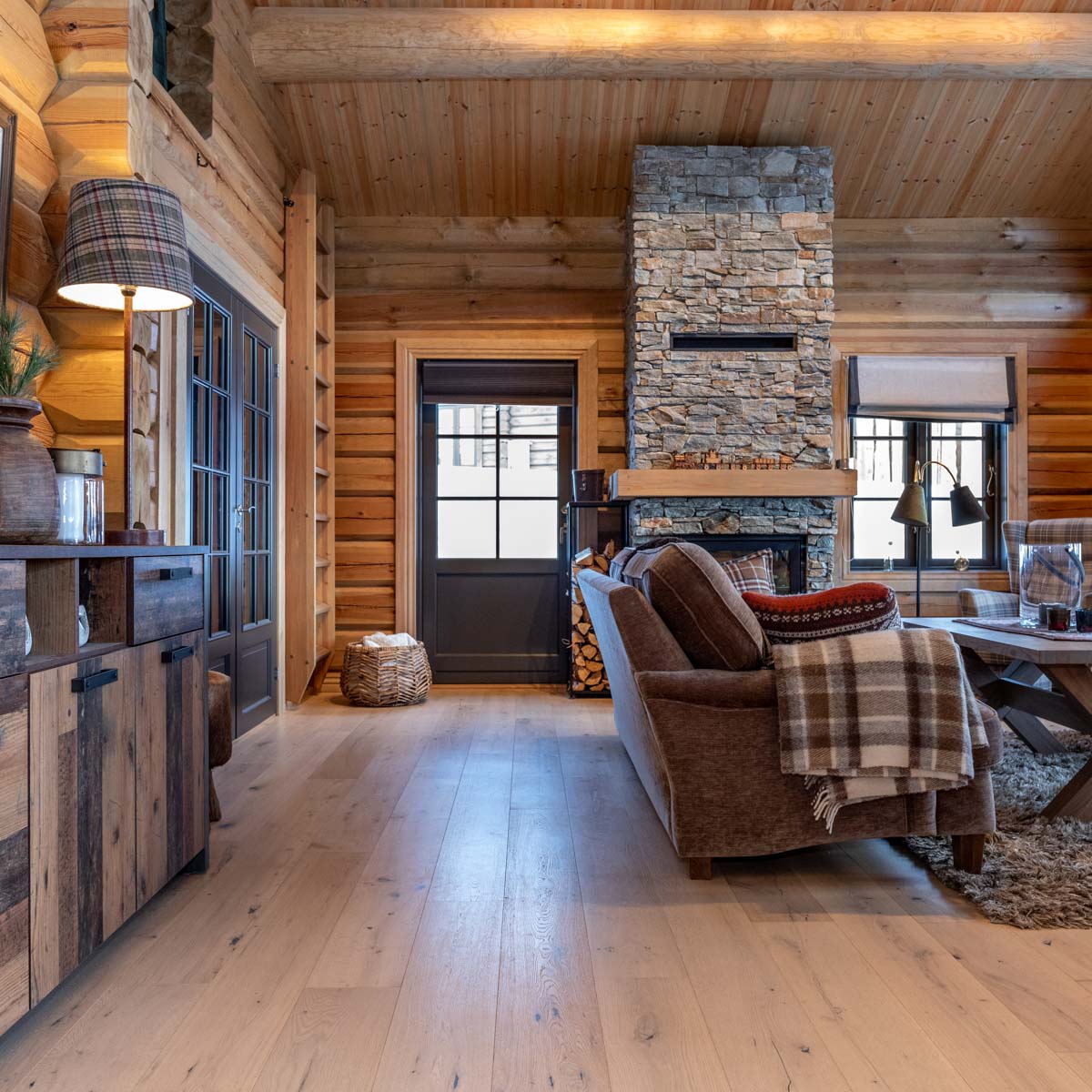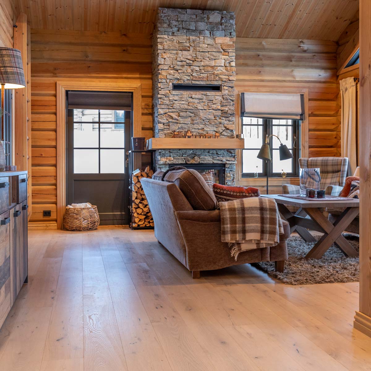 Parkett Tinnoset Røff er i et herritage-uttrykk med spredte kvist og «sprekk formasjoner» som gir gulvet det ultimate livet sammen med den spesialutviklede fargesammensetningen som passer perfekt inntil norske fjellhytter!