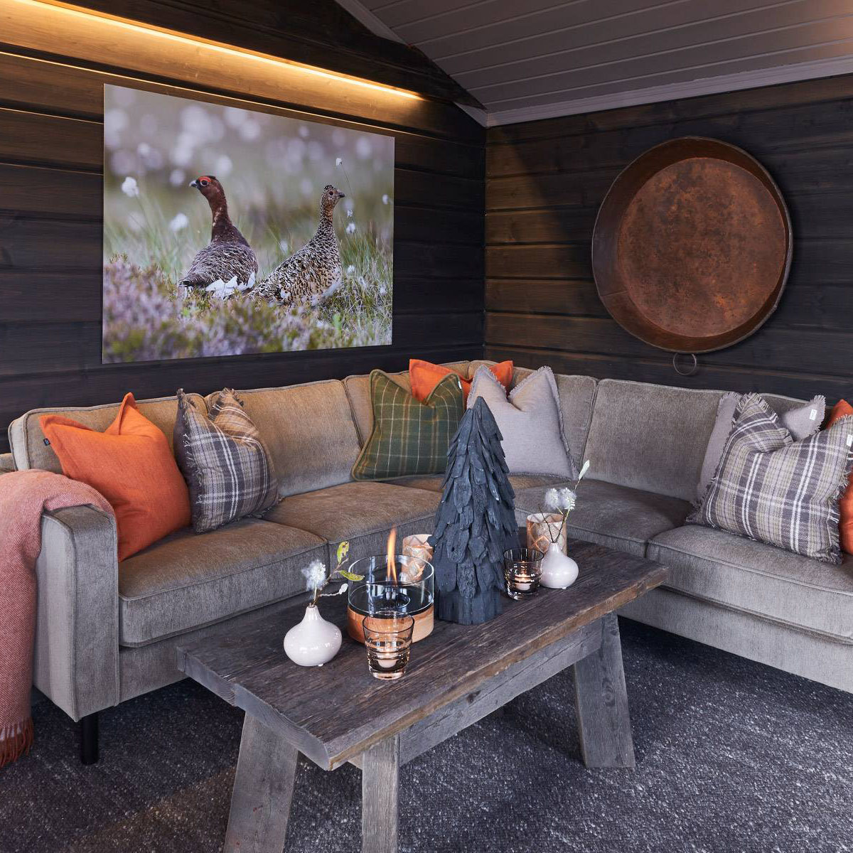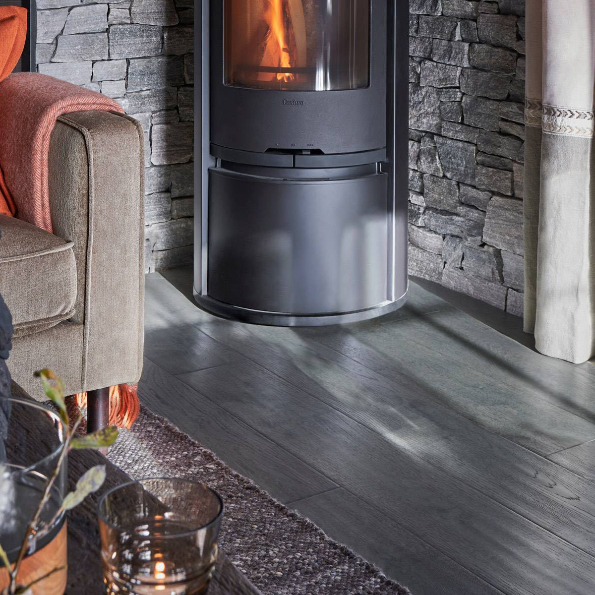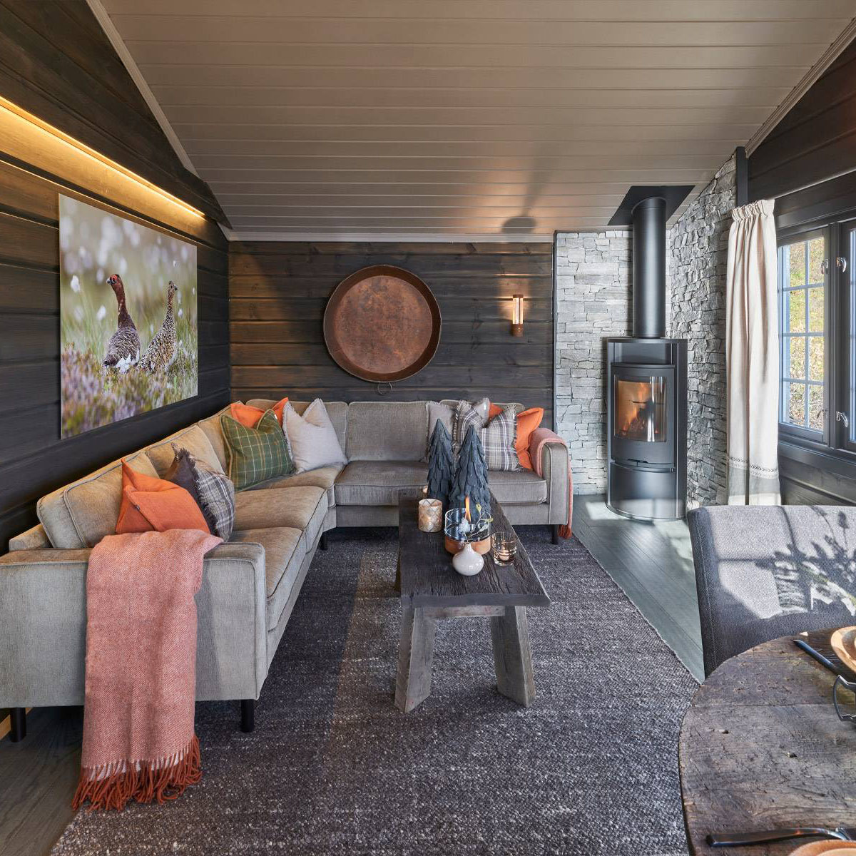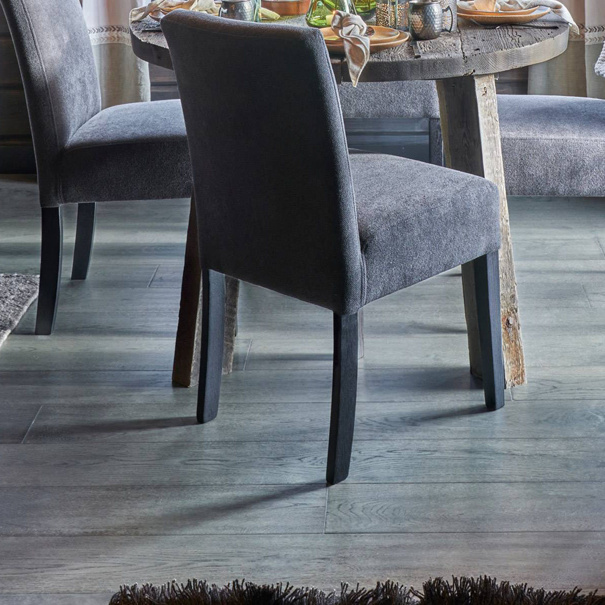 Vakker parkett i mørke grå mot antrasitt og værbitt overflate. Dette er et parkettgulv med farger i fra fjellets virkelige lød. Den store trenden nå på fjellhytter er at tømmervegger og gulv går i ett mot store vindusflater som slipper inn mye lys. Parkett Hemsedal er Ustaoset enkel å kombinere mot beis fra Jotun eller Tyrilin hvor det treffer nærmest perfekt. Jotun sin KULLSORT er benyttet av flere.