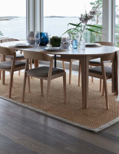 En børstet overflate fremhever teksturene i treet, og tilfører noe mer livlig og herskapelig når dagslyset danser over gulvet. Parkett Ask Fjellstul  er i natur sortering, noe som gir en mindre mengde med kvist i størrelse og i omfang. Et gulv som gir et rent, rolig og naturlig uttrykk.